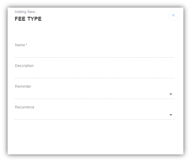 4. Click  to add a new Fee type and enter its Name, Description, Reminder, and Recurrence.